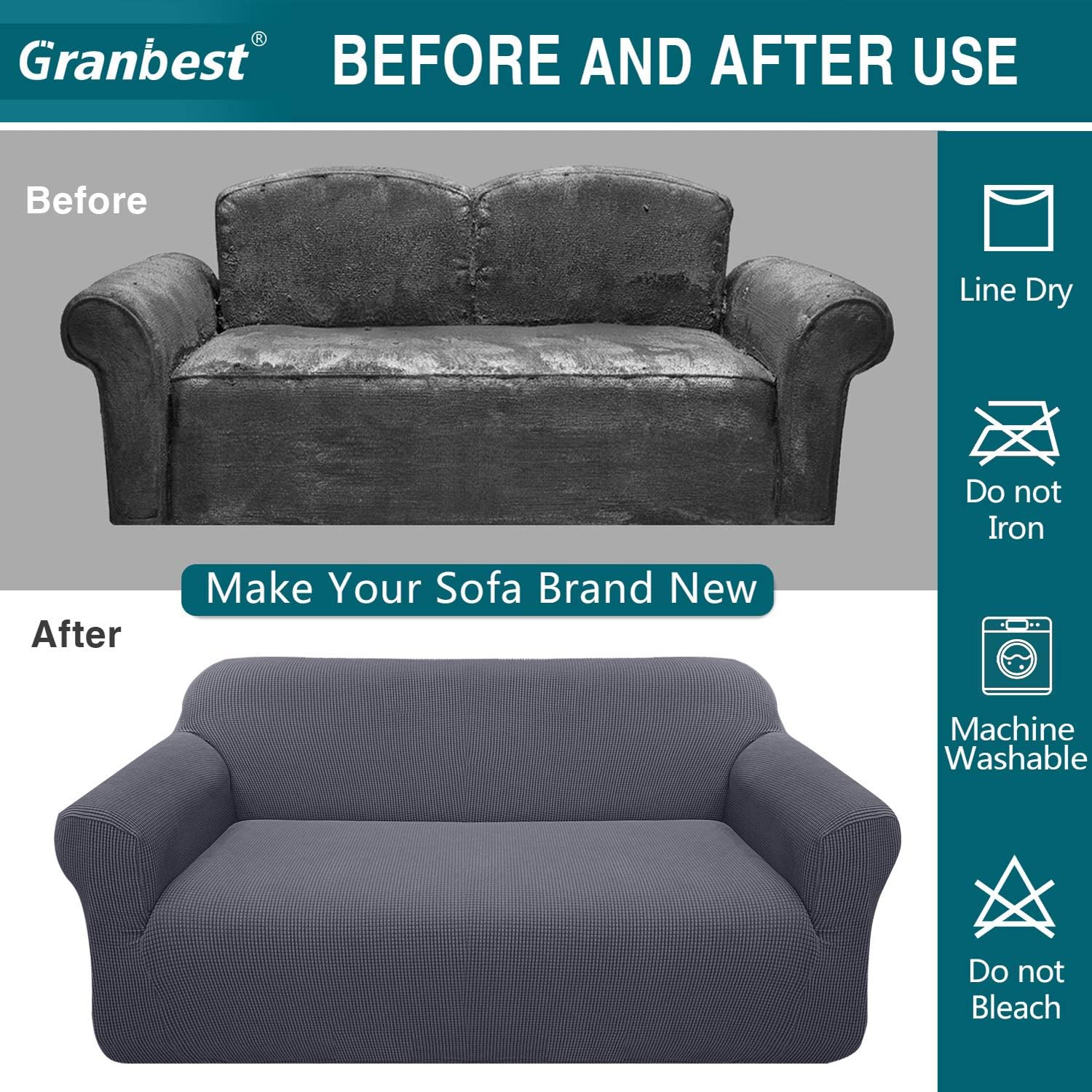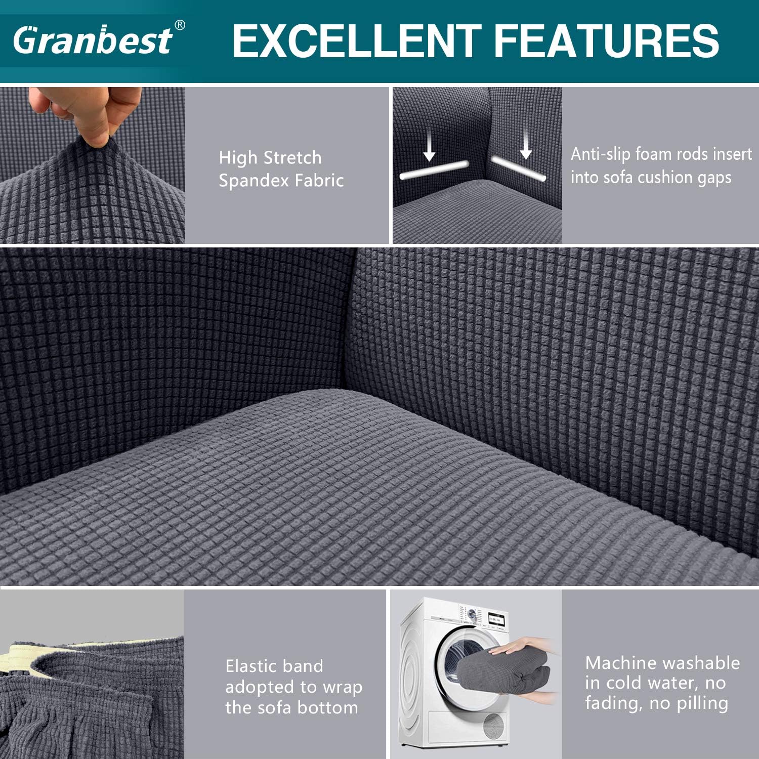 🌈PREMIUM FABRIC&AESTHETIC DECOR: Designed with a softly textured small checks with thick fabric in vivid solid colors, Granbest stretch sofa cover can bring a brand new change to your entire home decoration style and enhance the luxury feeling of the living room. The unique polyester-spandex blend upholstery material of our magic sofa cover has excellent elastic function, so it will not deform. And it is soft to touch, comfortable, thick and study, durable for long term usage.