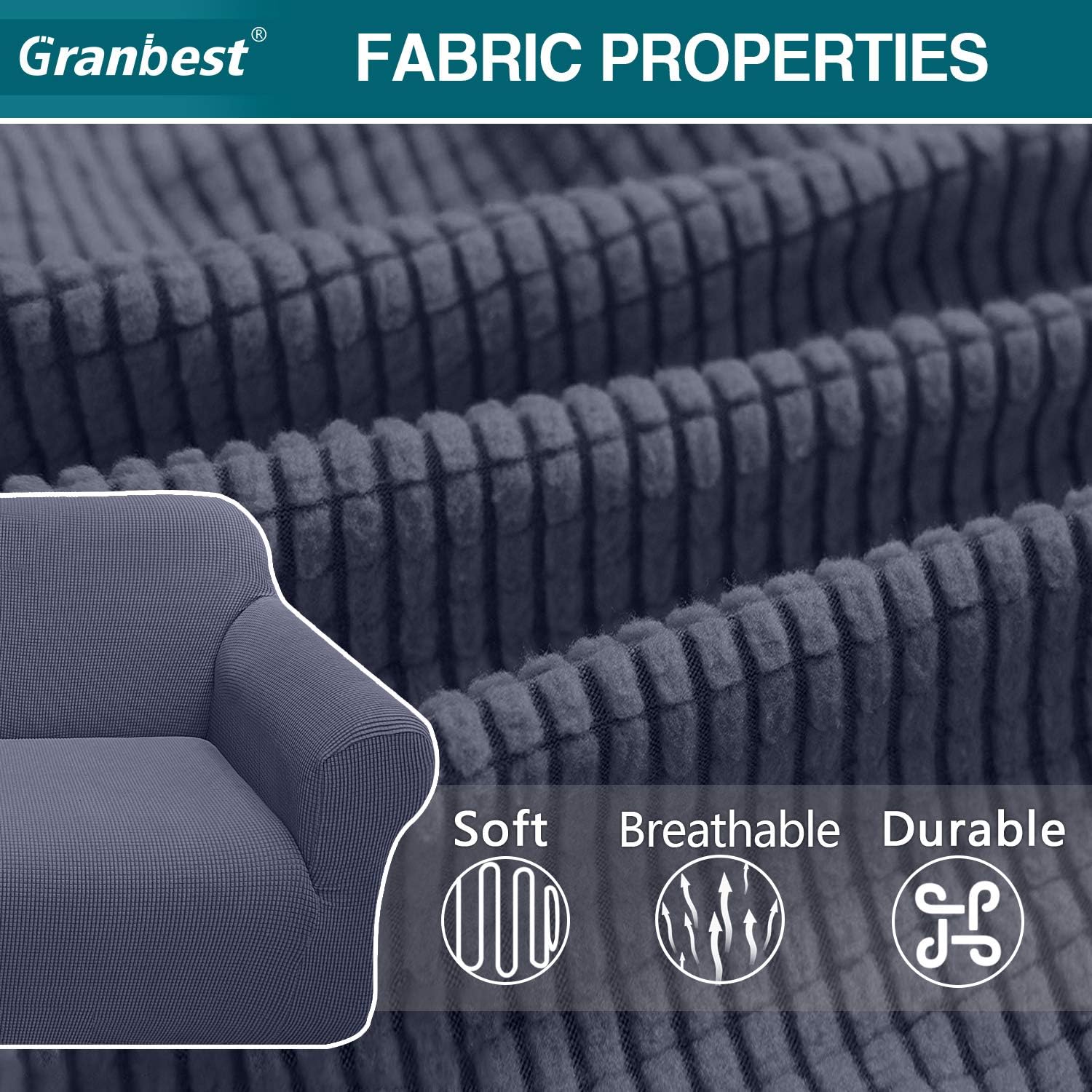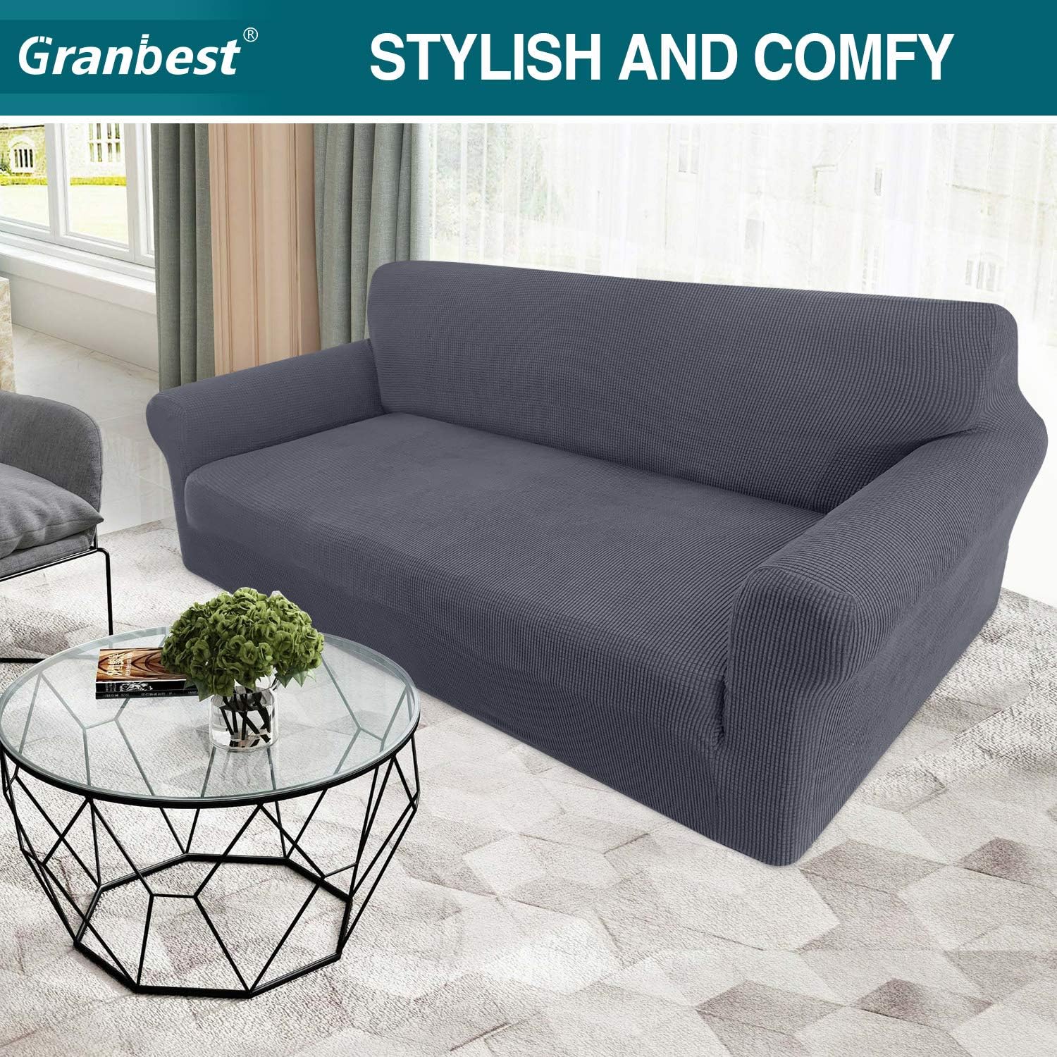 Designed with a softly textured small checks with thick fabric in vivid solid colors, Granbest stretch couch cover can bring a brand new change to your entire home decoration style and enhance the luxury feeling of the living room.