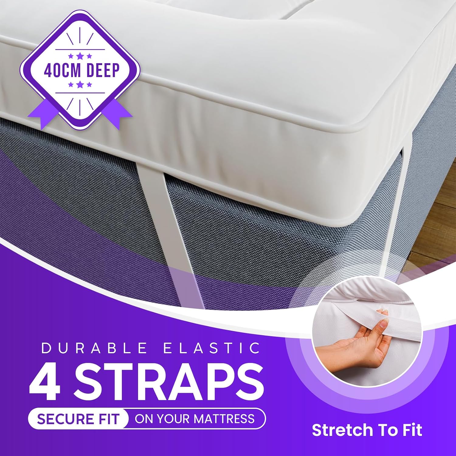 ๐๏ธ ๐๐๐๐๐๐ ๐๐๐๐๐๐๐ ๐๐๐๐๐๐ ๐๐๐๐๐๐ โ ๐๐ ๐๐๐๐๐๐๐๐ ๐๐ ๐๐๐๐๐๐๐๐: Equipped with strong elastic straps on all four corners, the topper stays firmly in place, preventing movement and bunching. Perfect for restless sleepers and thicker mattresses where stability is essential. Designed to fit double bed mattresses (137ร190cm) securely in master bedrooms, guest rooms, dorm rooms, or rental properties.