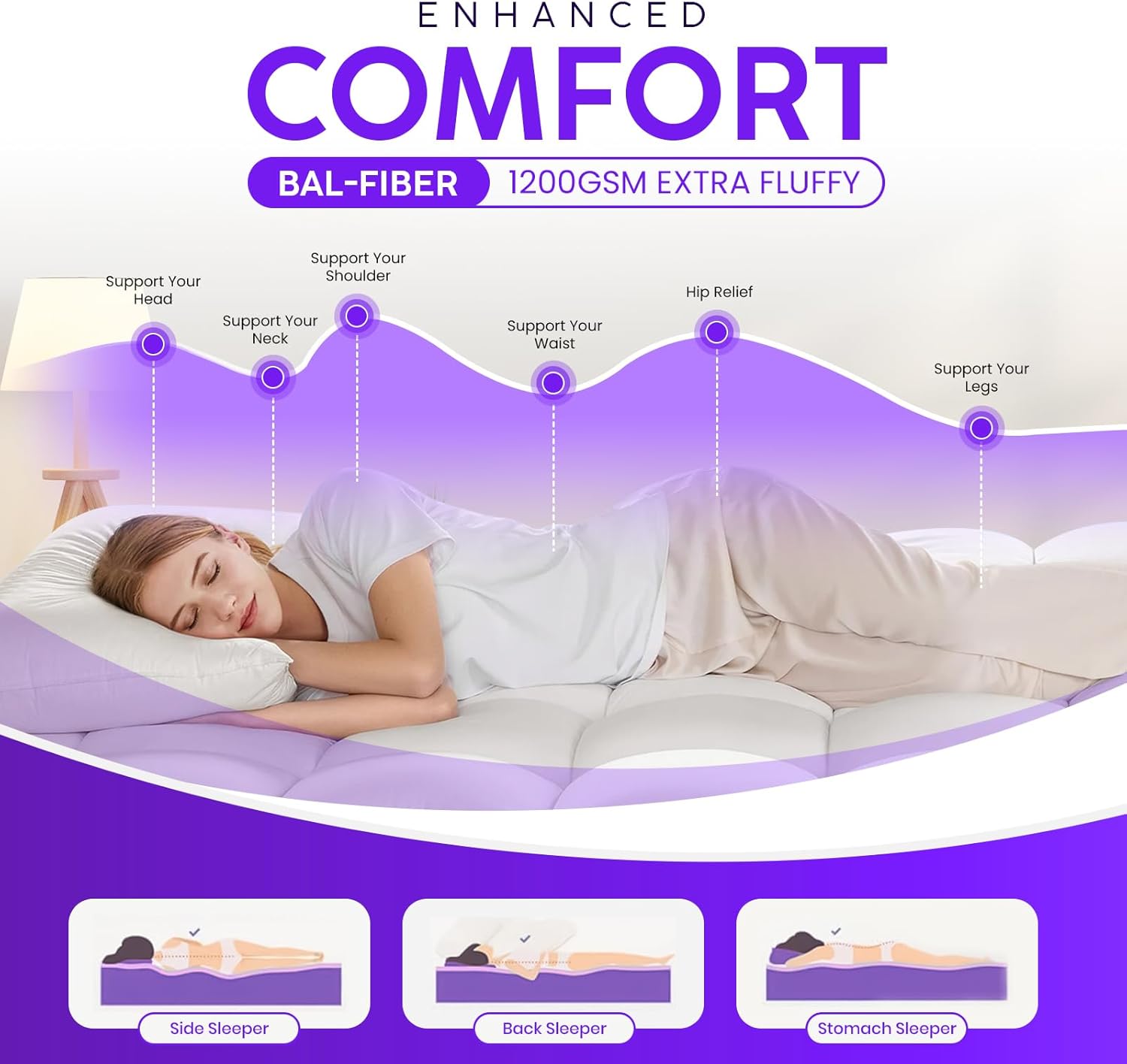 ๐๐๐๐๐: Designed to boost comfort effortlessly, this thick topper provides cloudlike pressure relief and gentle body contouring. Ideal for reducing back and hip discomfort while helping you enjoy deeper, uninterrupted sleep every night. Suitable for year-round use, providing warmth in winter while remaining breathable for summer comfort.