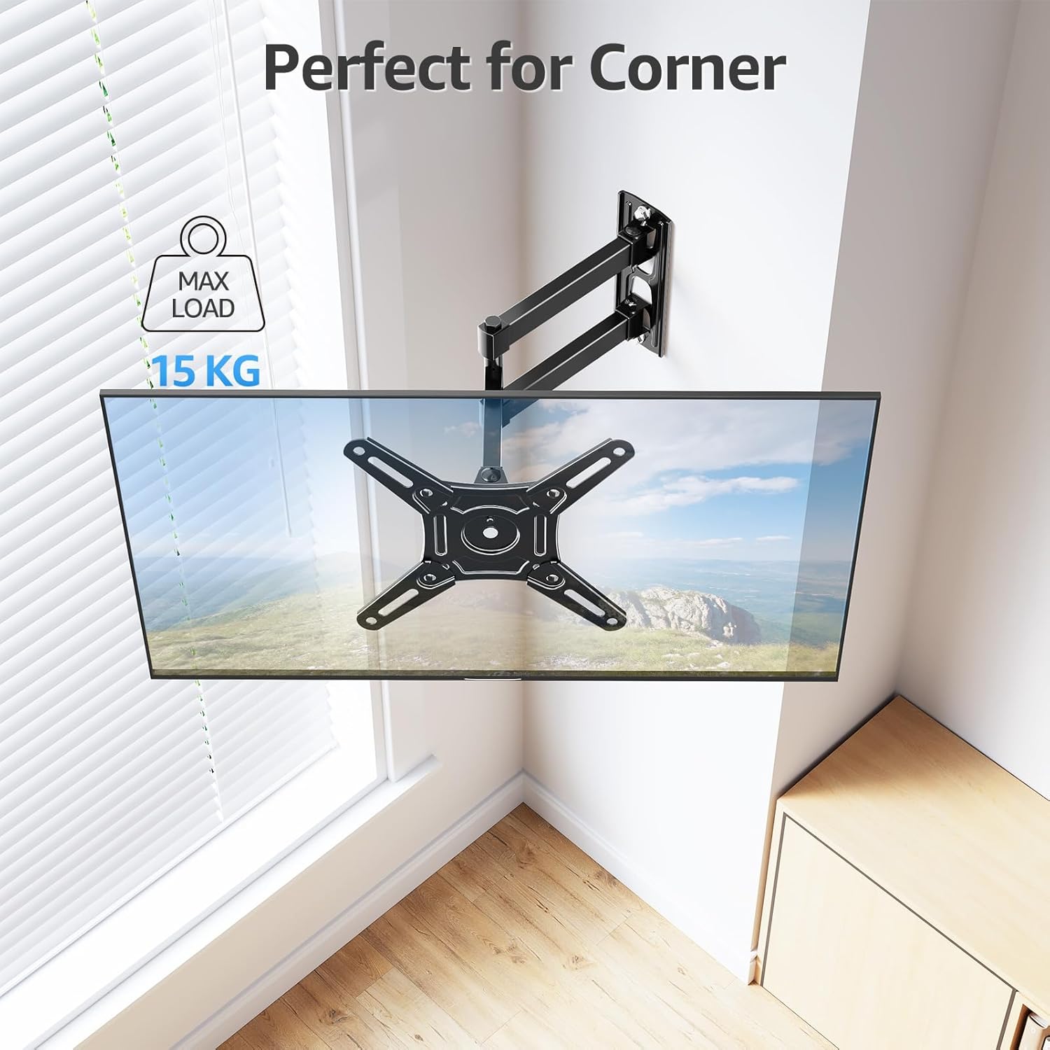Perfect Viewing Angle: This full motion TV mount can tilts +5°/-5° to reduce glare, pulls out to 377mm and retracts back to 69mm, surely be an ideal choice for TV installation in the corner