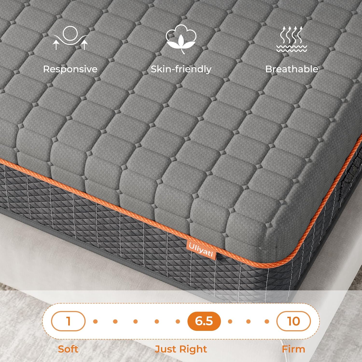 COMFORT & SUPPORT: Uliyati memory foam mattress is designed to redefine your sleep comfort. The advanced memory foam technology responds precisely to your body’s unique contours, cradling you in a cloud-like embrace. It offers targeted support to your head, neck, shoulders, spine, and hips, ensuring proper spinal alignment and reducing the risk of waking up with aches and pains. Sink into a world of relaxation and enjoy a truly restful slumber